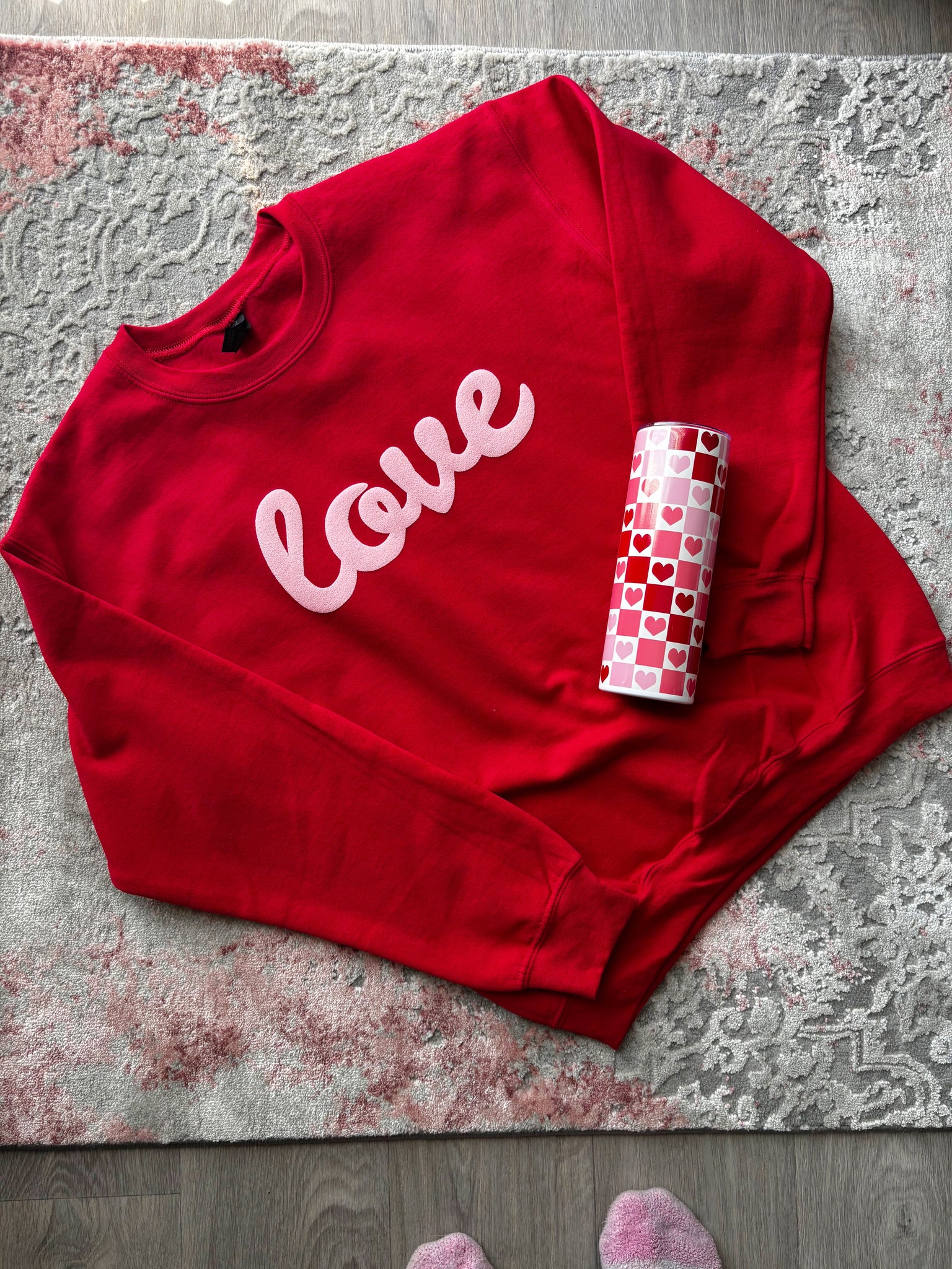 20 oz stainless steel tumbler featuring checked heart design. Perfect for Valentine’s Day!!
