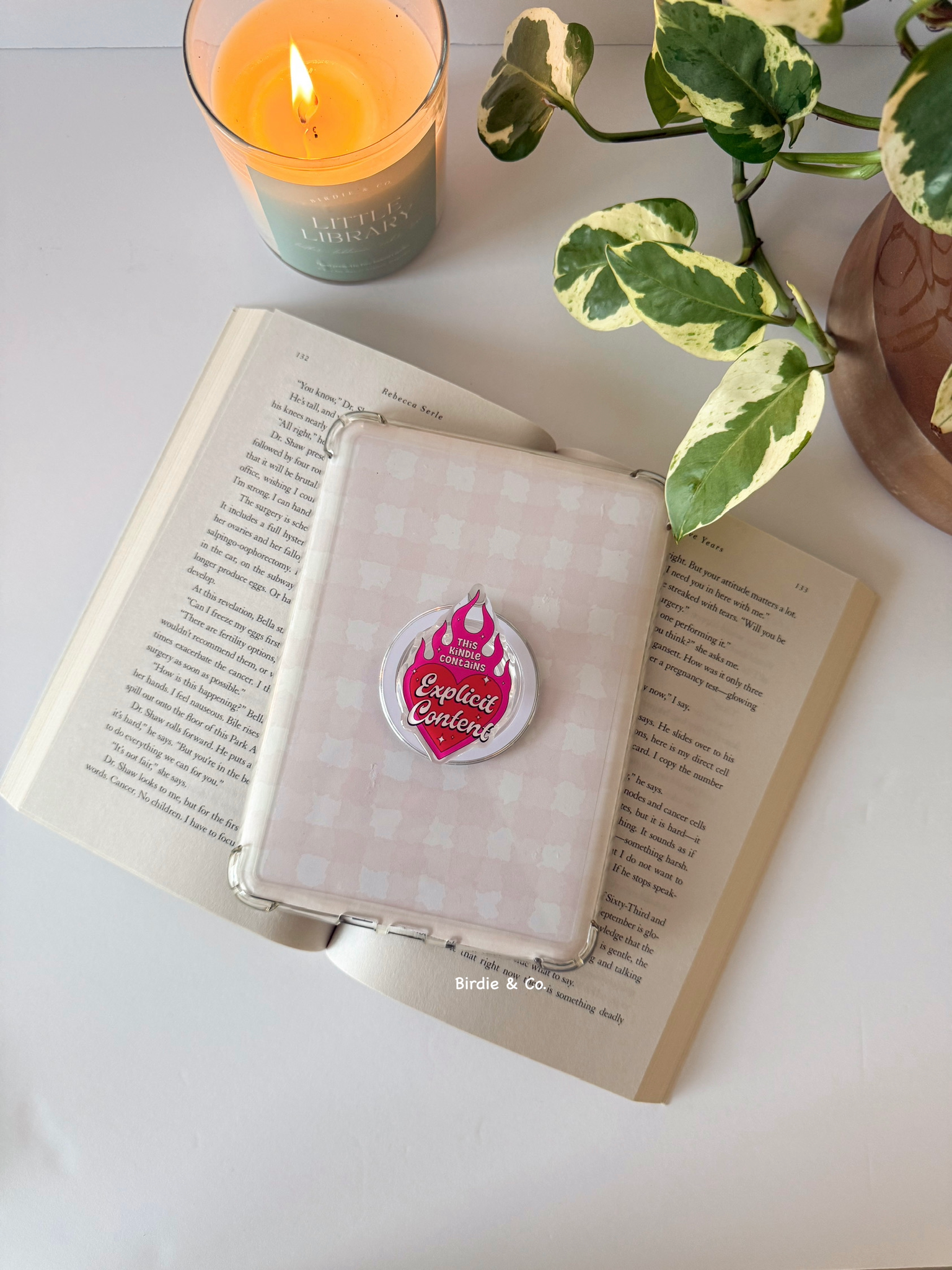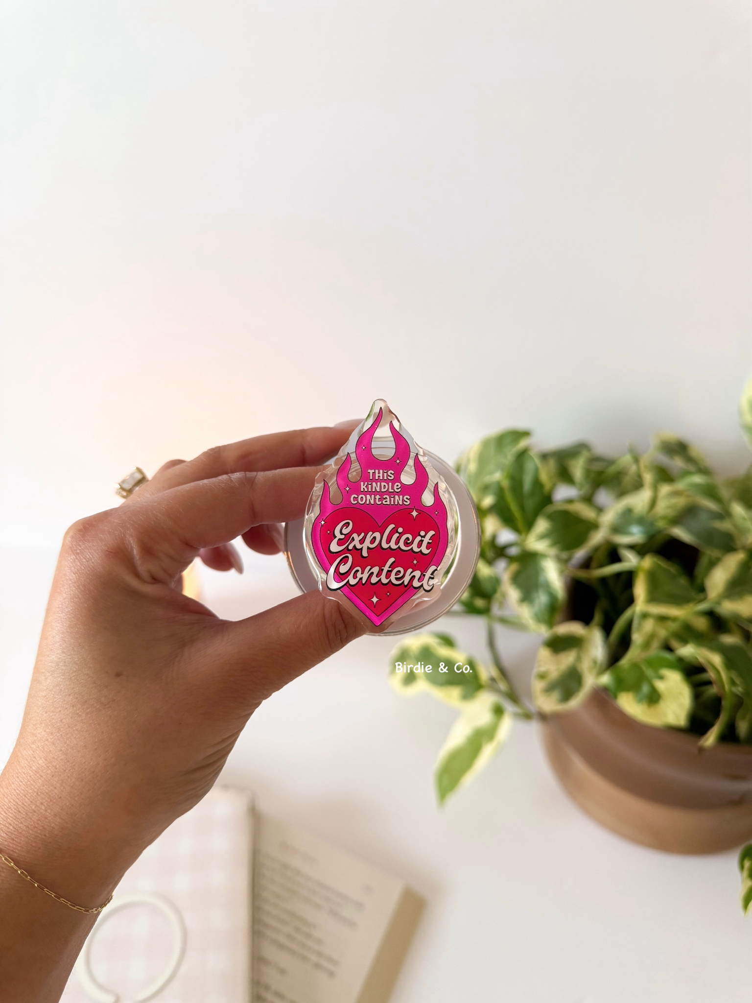 Add a touch of spice to reading time with our Kindle Contains Explicit Content Kindle Grip. This quirky, stylish grip makes holding an e-reader effortless while doubling as a cute bookish accessory. The best part? It snaps on magnetically — no sticky residue, no mess.