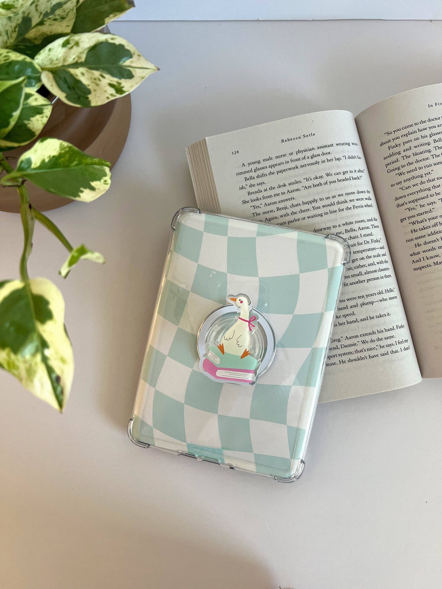 Our Reading Goose Kindle Grip is a playful yet practical accessory for book lovers. Designed to make holding an e-reader effortless, this grip features a whimsical reading goose design that adds charm and comfort to every reading session. Lightweight, durable, and easy to apply, it’s the perfect book lover gift or impulse-buy accessory. The best part? It snaps on magnetically — no sticky residue, no mess.