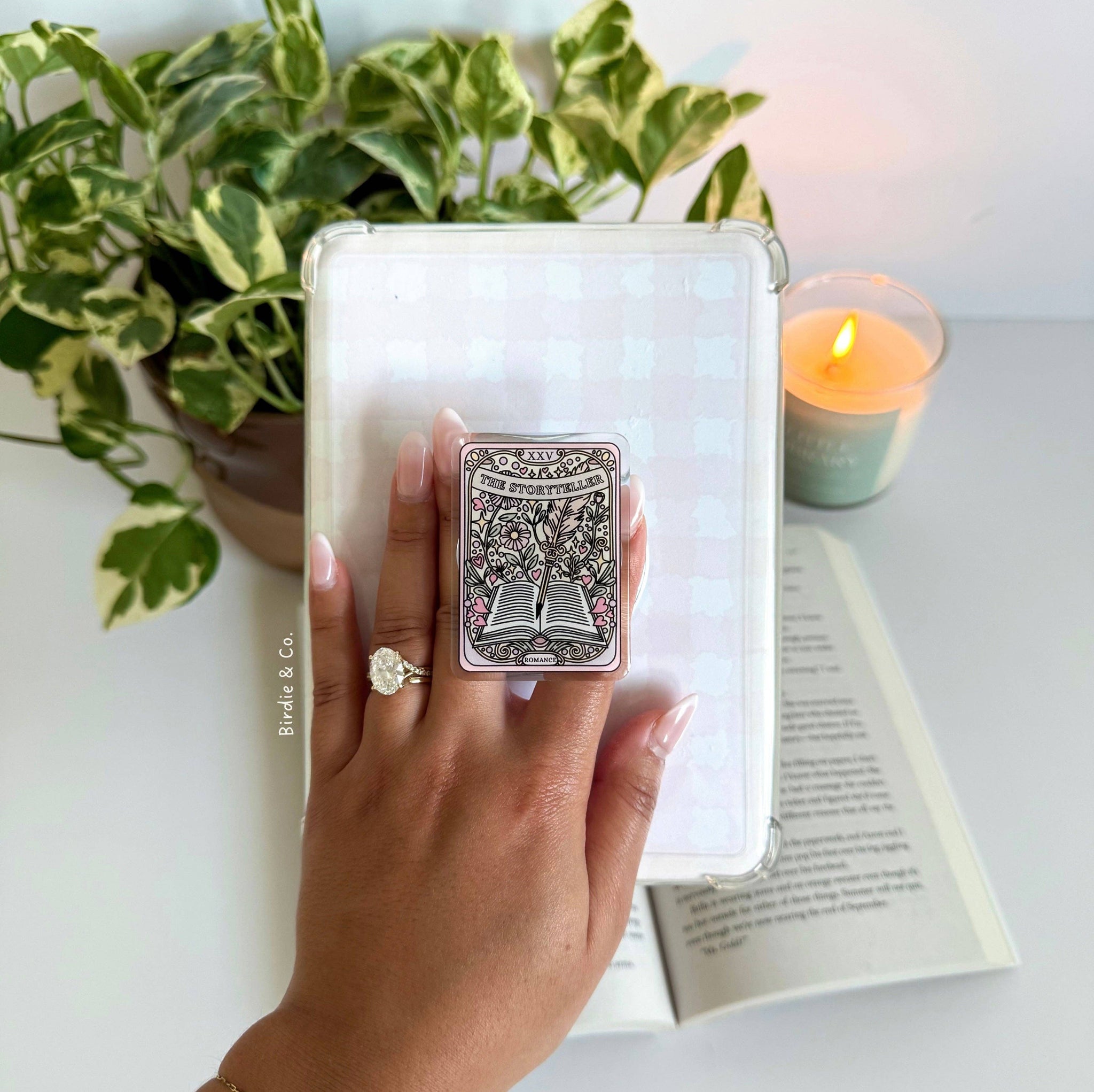 Add a touch of romance and magic to every chapter with our Romance Storyteller Tarot Card Kindle Grip. Inspired by tarot’s mystical symbolism and the timeless pull of love stories, this grip is designed for readers who want both comfort and beauty in their reading routine. The best part? It snaps on magnetically — no sticky residue, no mess.